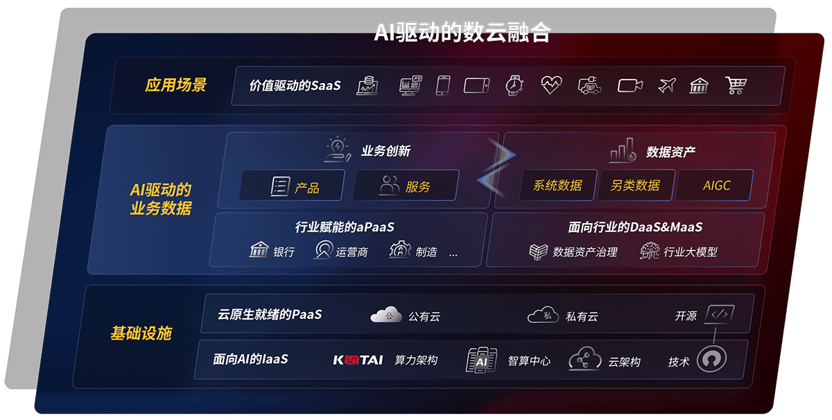 以君临国际鲲泰全国产化计算产品帮助金融行业客户构筑数字底座;以丰富的AI和数云产品及方案,,,保障数据安全,,,,挖掘数据价值,,提升服务品质
