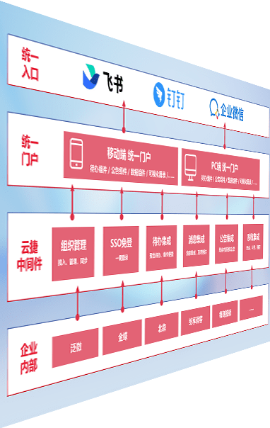 对协作平台提供支持服务,,,支持企业应用与协作平台对接,,,,包含组织同步、、、消息集成、、、、待办集成等。。支持目前主流的协作平台:钉钉、、、企微和飞书。。